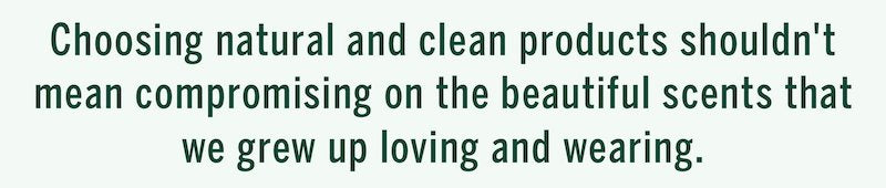 Choosing natural and clean products shouldn't mean compromising on the beautiful scents that we grew up loving and wearing. The use of natural fragrance can still offer an elevated touch – look at the scent notes and you’ll find complex, unique combinations of rose, citrus rind and vetiver root to name a few.